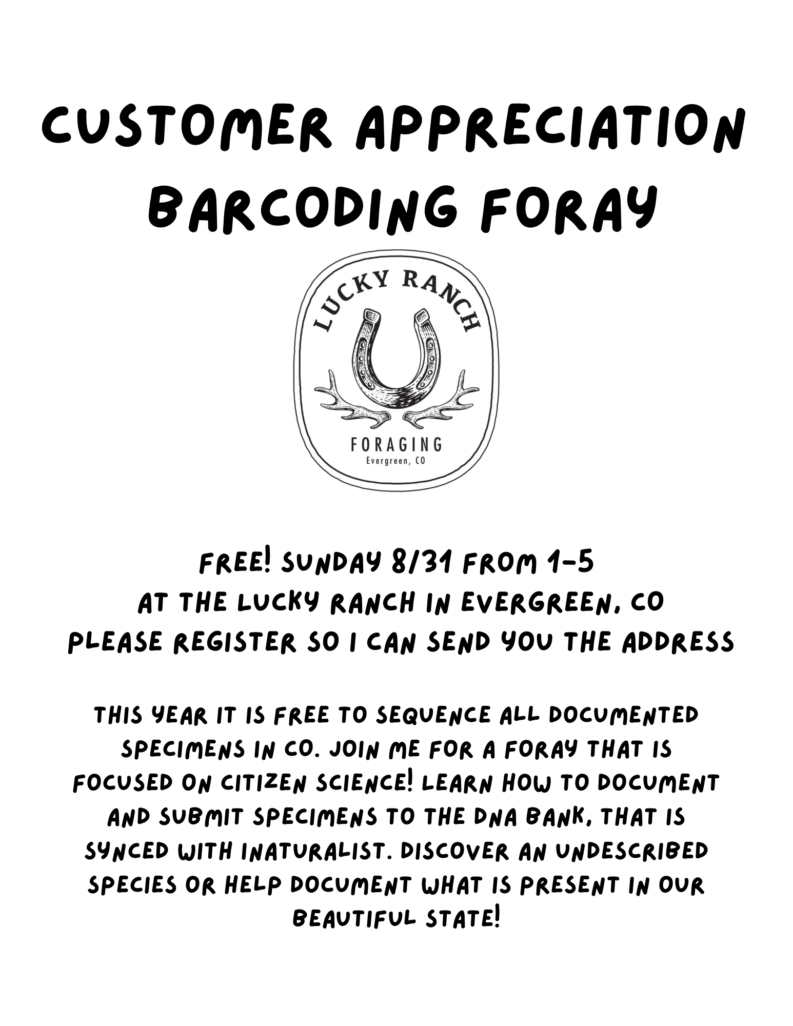Join me at the ranch I live on, to learn how to document and submit samples for DNA sequencing. A generous grant was written to allow for free sequencing of specimens in 2025. Let’s use this last good opportunity, to document as many mushrooms as we can. I just learned how to do this from Mandie Quark and Alan Rockefeller, and would like to share what I have learned with you.